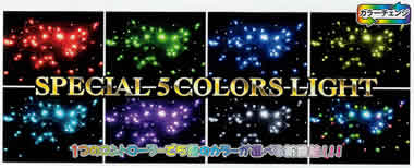スペシャル5は1つのコントローラーでレッド・ブルー・グリーン・イエローの4色と、自動で変化するマルチカラーの合計5カラーの中からお好みに合わせたカラーを選ぶことが可能です。また、マルチカラーと違ったカラーコンビネーションも兼ね備えており、そのコンビネーションではさらに3色が追加されてより華やかなカラーが楽しめます。(こちらは色を選ぶことができず、自動変化となります。)