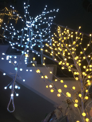 アダプターを入れると、モチーフに散りばめられたLEDが美しく輝きます。付属のコントローラーでお好みの点滅パターンをお選びいただけます。※画像は210cm